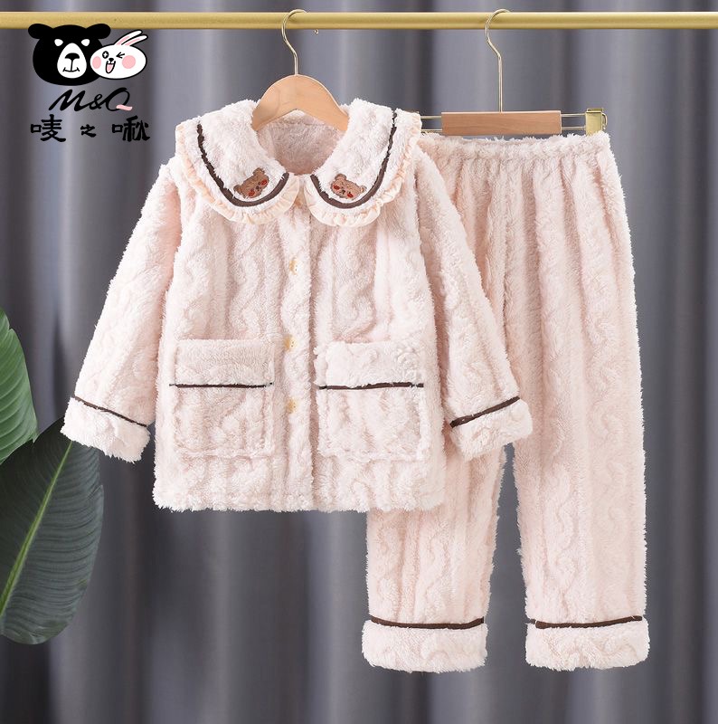 M&Q唛之啾儿童睡衣秋冬装加厚款2023新款女童法兰绒套装小女孩珊瑚绒家居服