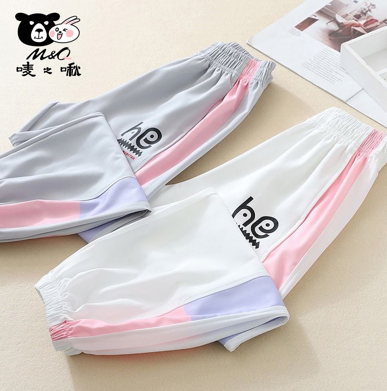 M&Q唛之啾女童夏装九分裤2023新款洋气宽松大童运动裤夏季潮儿童冰丝防蚊裤