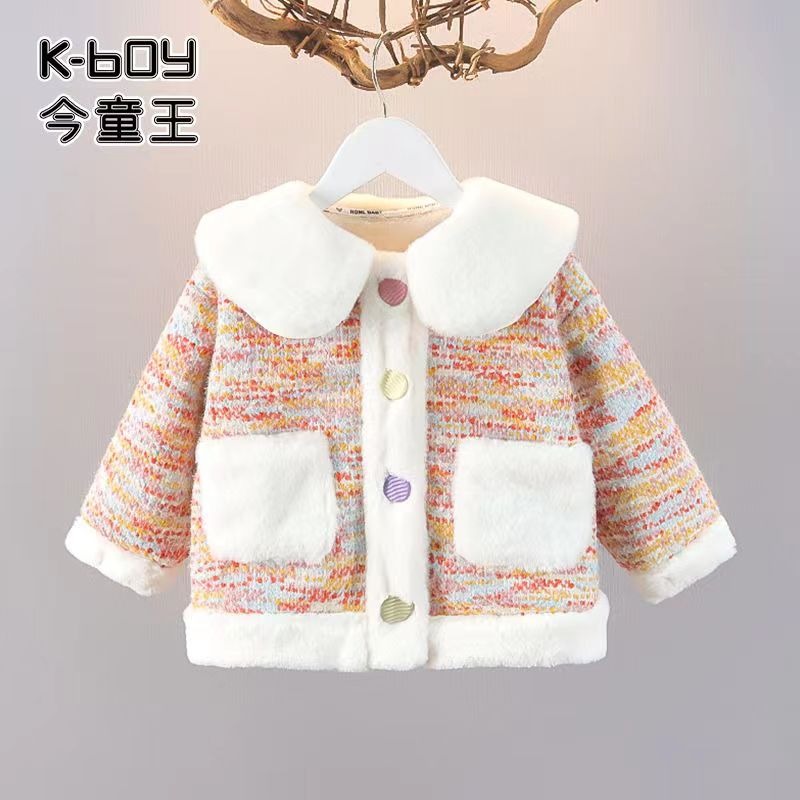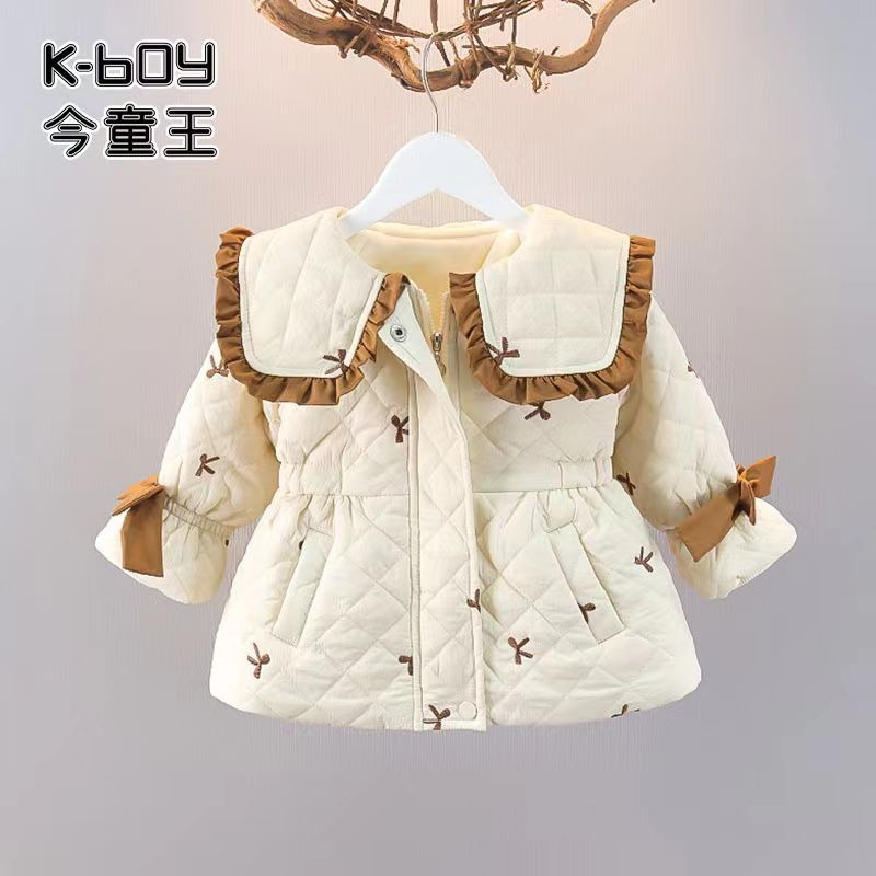 今童王女童加绒外套秋冬季2023新款女宝宝夹棉服洋气儿童加厚棉服