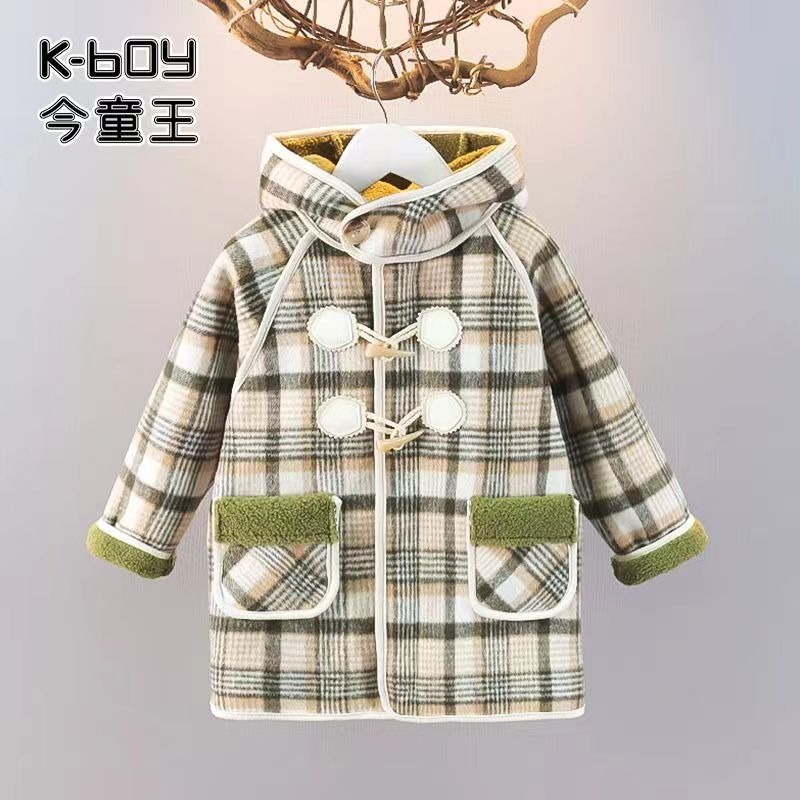 今童王女童加绒外套洋气秋冬中长款儿童呢大衣休闲冬装女宝宝上衣
