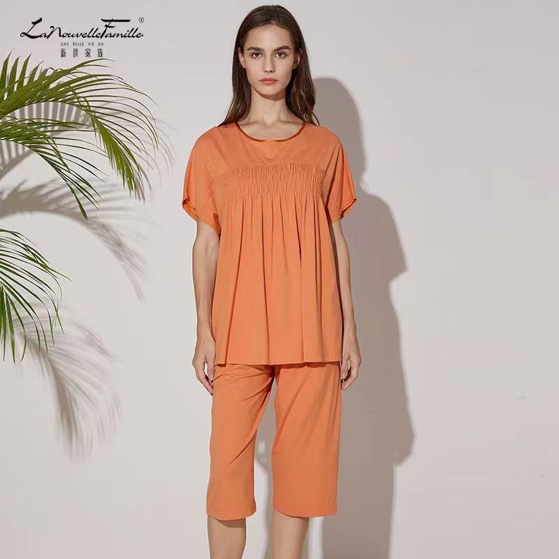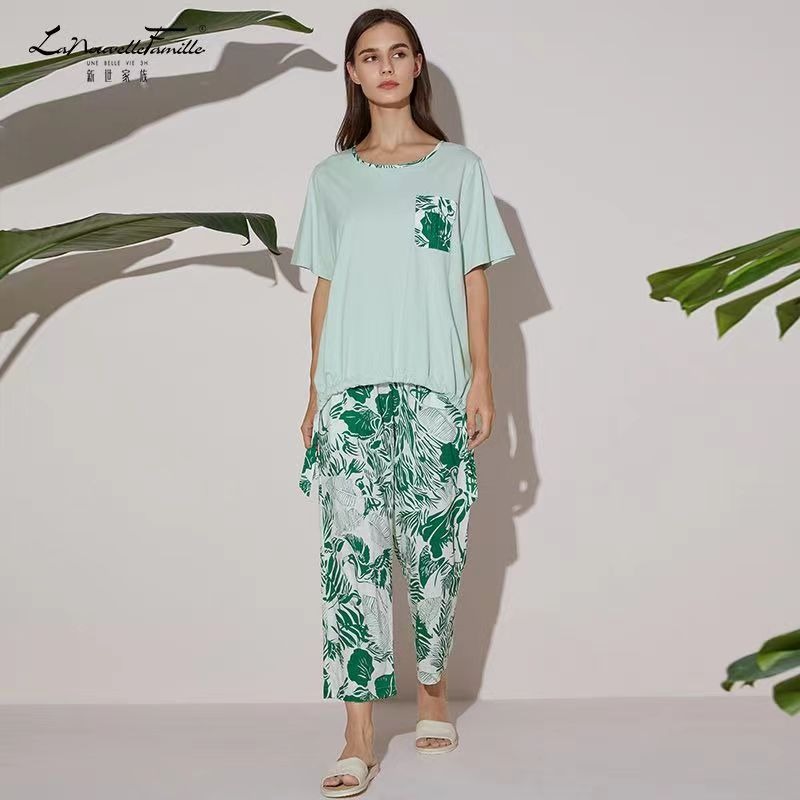 新世家族夏款2023年新款女款短袖九分裤家居服睡衣GXHW1025专柜款
