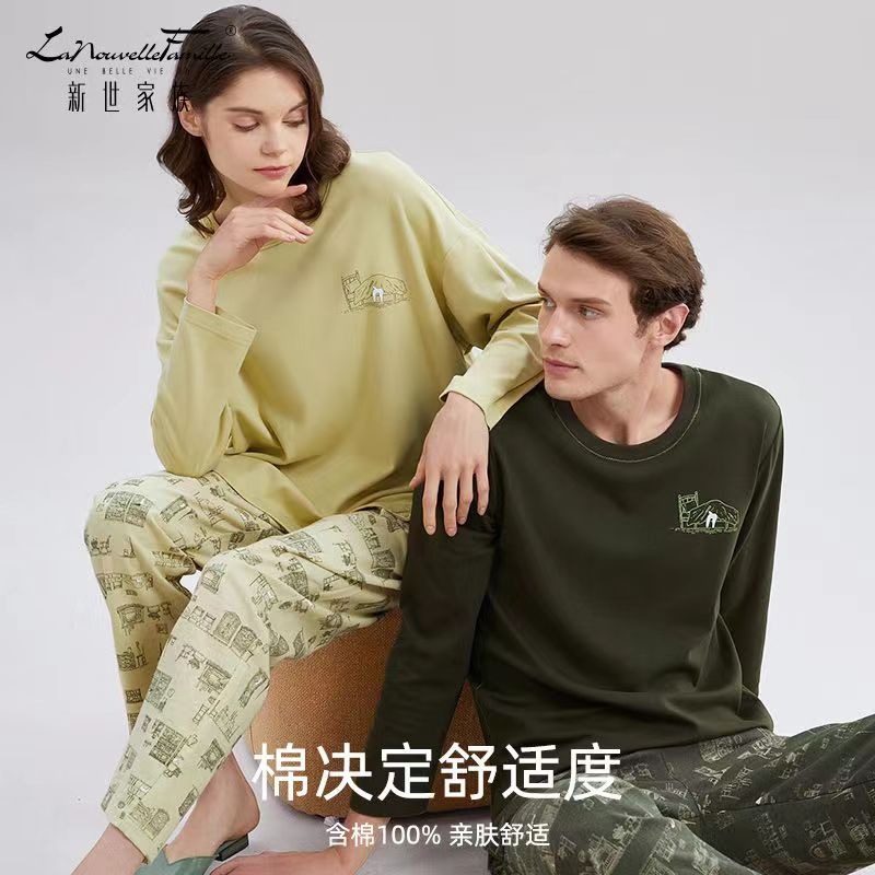 新世家族情侣睡衣春秋纯棉长袖女士可爱宽松休闲青年男家居服套装