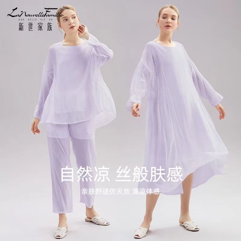 新世家族家居服套装春夏季睡衣女裙可外穿度假服天丝天鹅湖裙